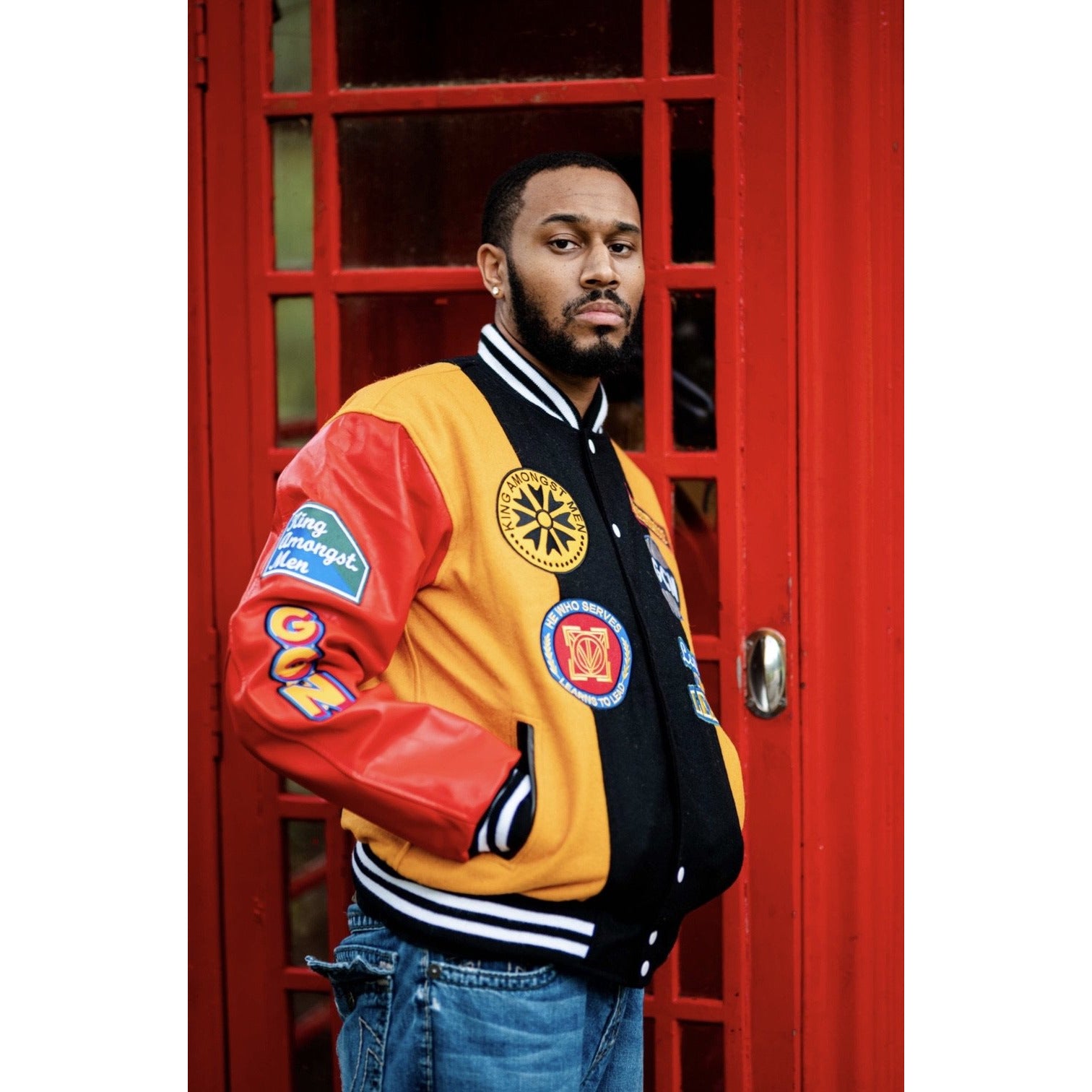 Our one of a kind letterman jackets made of wool body and leather sleeves comes stamped with Uniquely crafted embroidered logos that will build your confidence. Each logo is derived from African symbols known to awaken the true Leader spirit within. Either choose the black and white trim or the majestic all black. Either way it will have you looking Majestic and feeling like the Royalty that you are.